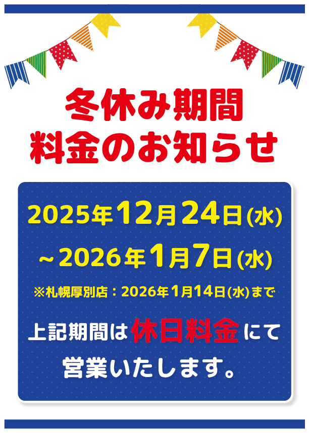 冬休み期間料金のお知らせ