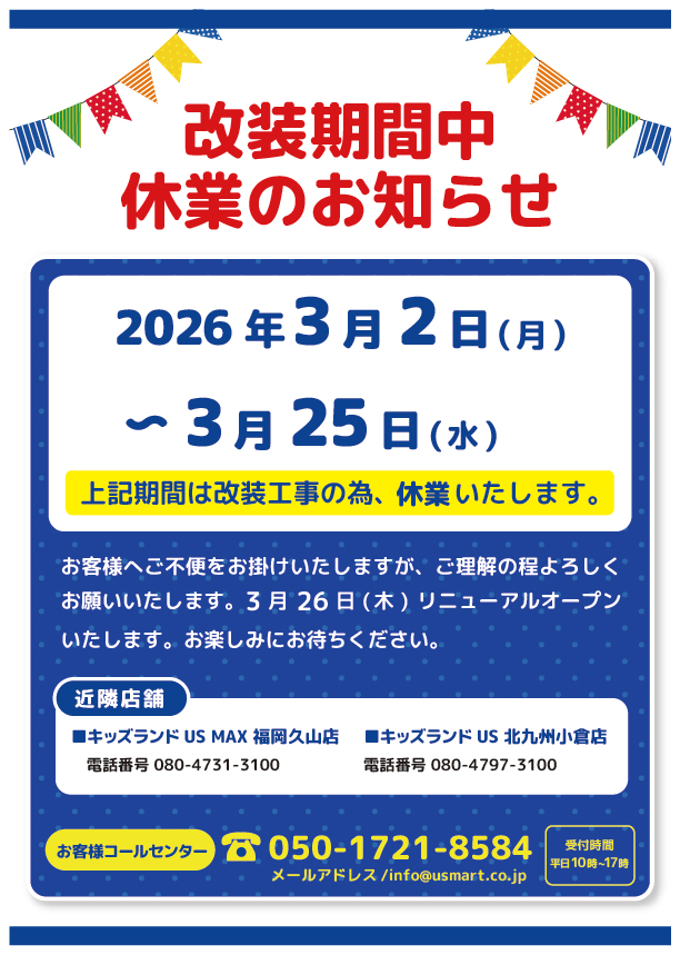 ※3/2(月)~3/25(水)の期間、リニューアル改装に伴い休業いたします。